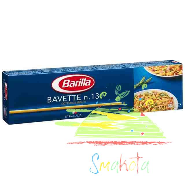 Баветте - довга паста з твердих сортів пшениці традиційної якості Barilla. Завдяки своїй унікальній формі, паста прекрасно утримує соус на своїй поверхні і дозволяє йому розкрити всю гаму смаків і ароматів.