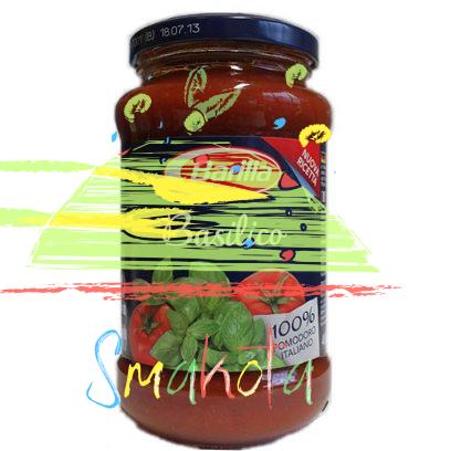 Barilla соус томатний, Basilico з базиліком - це один з популярних соусів, який складається тільки з натуральних інгредієнтів. Виготовлений соус Basilico з солодких помідорів, спецій, до яких додано базилік для пікантності смаку. Соус з базиліком не містить ароматизаторів, консервантів і загусників. Завдяки своїм складом соус має густу консистенцію і насичений пряний томатний смак.