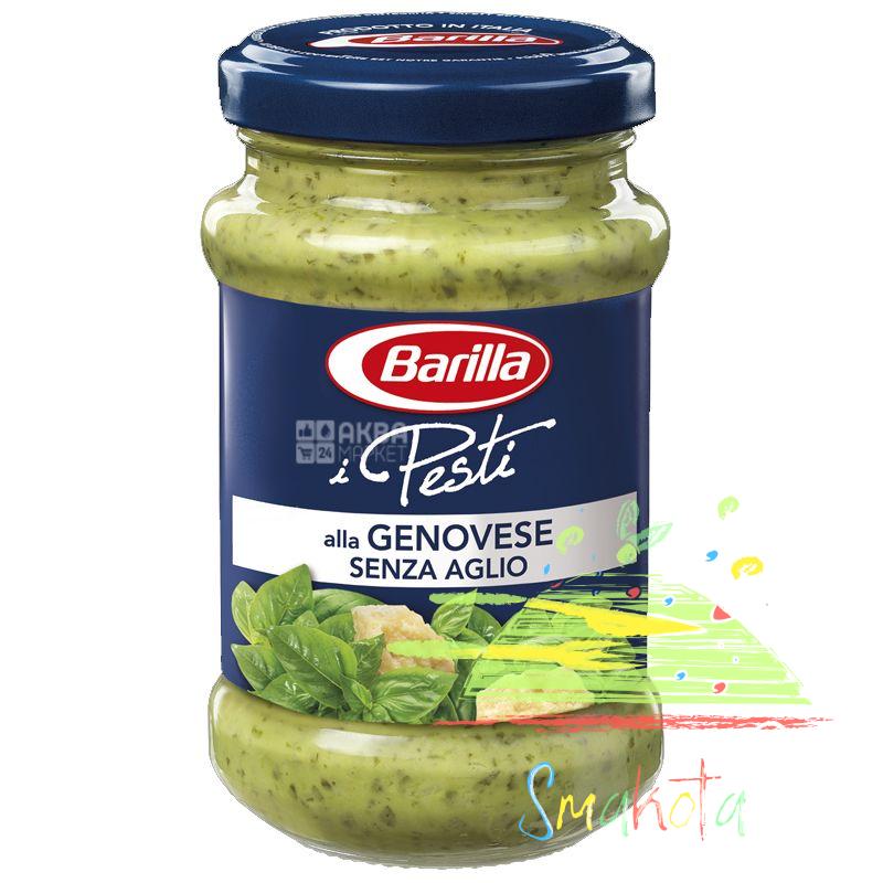 Соус Песто Pesti alla Genovese senza aglio (Пести алла Дженовизе сенца аглио) ТМ Barilla (Барилла) – это один из популярных итальянских соусов, приготовленный на основе базилика и оливкового масла с добавлением традиционного итальянского сыра Пармезан и грецких орехов.