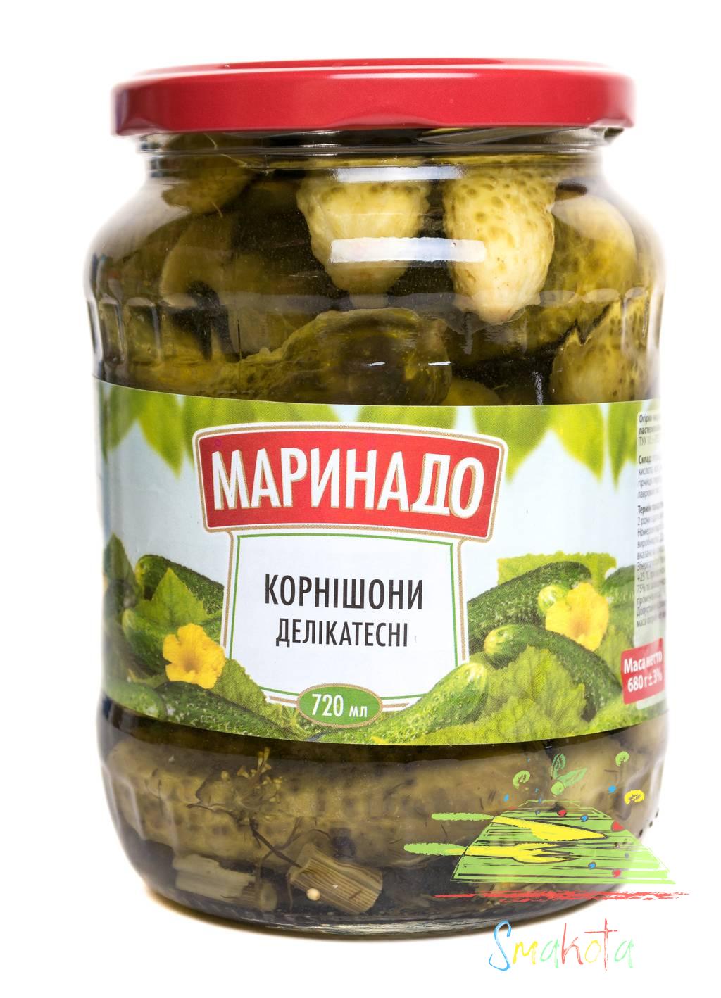 Корнішони делікатесніТМ Маринадо т/о 0,72л/6шт