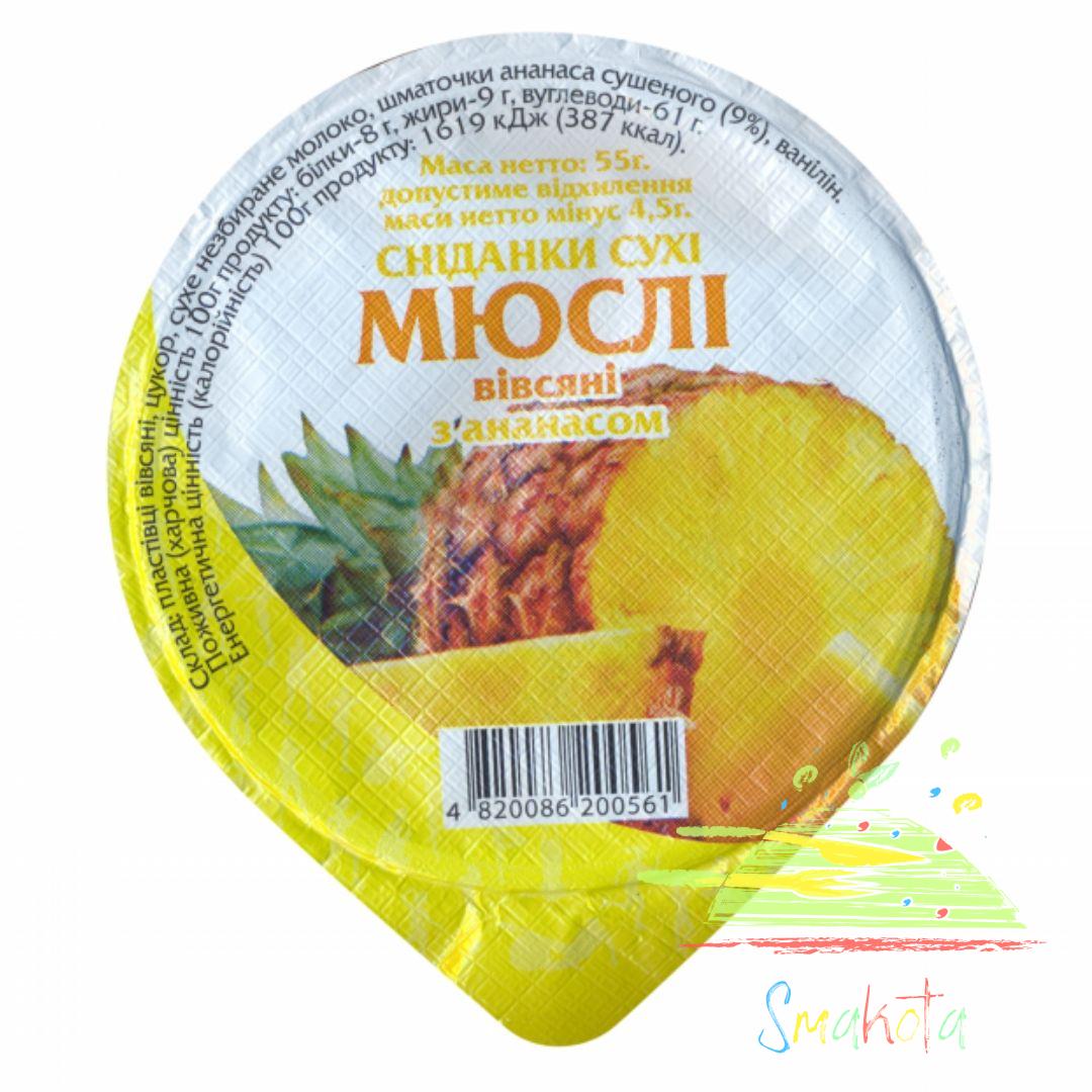 Мюслі вівсяні з ананасом Сила геркулеса 55г/30шт